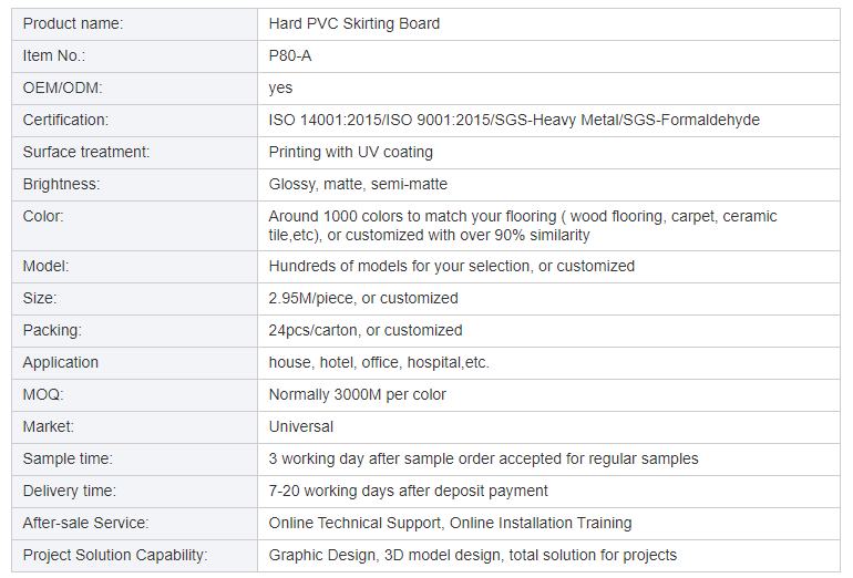 Rodapé de PVC da série ácido esteárico